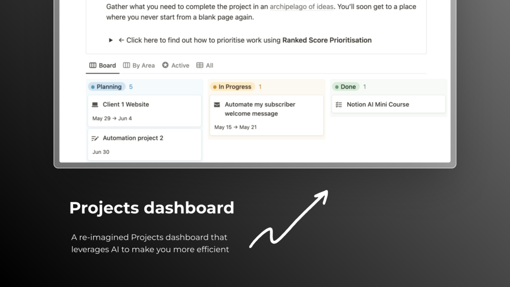 - Projects: Brain dump and prioritize projects with AI guidance, using the RICE method.