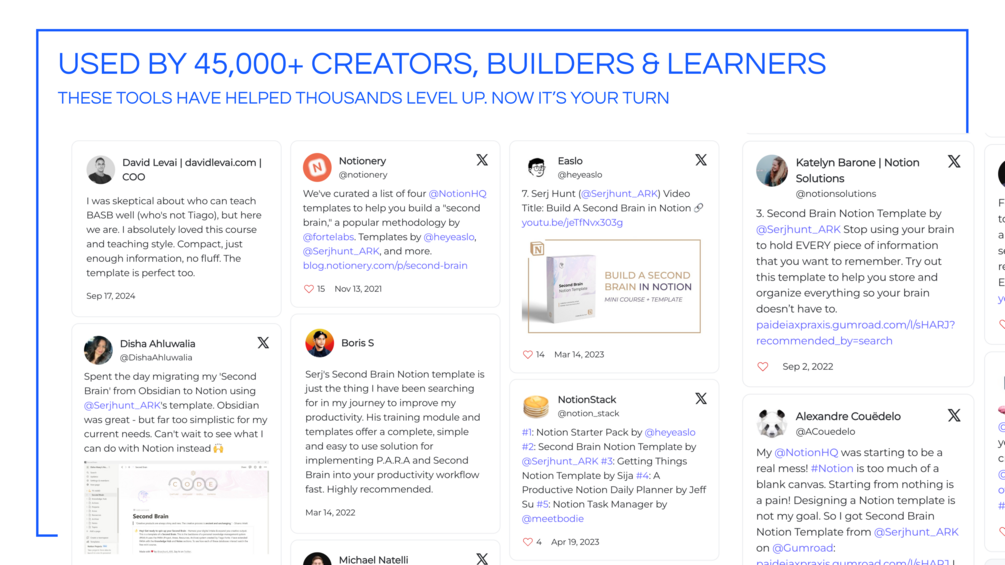 Over 30+ tools, templates, and trainings to 10x your learning, creativity, and digital product game — used by 45,000+ people.